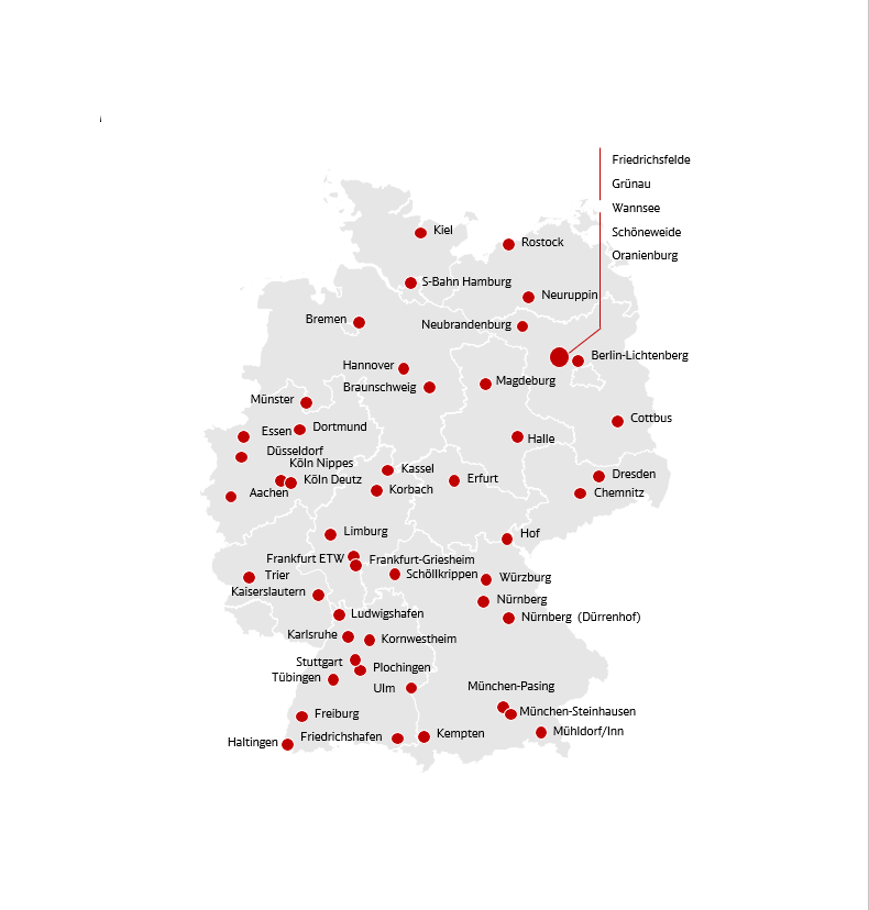 Unsere Werkstätten für die Instandhaltung von Schienenfahrzeugen im Nahverkehr findest du in der ganzen Republik und mit Sicherheit auch in deiner Nähe.