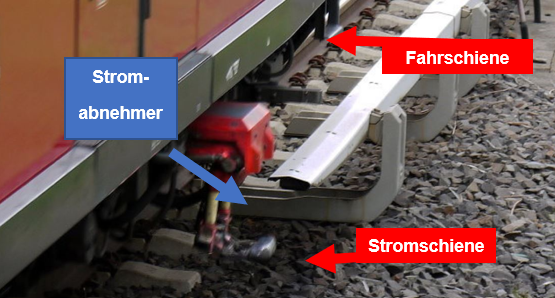 Pro Wagen verbraucht die S-Bahn bis zu 560 A. Wieviel Strom das „Maximum“ in einem Abschnitt ist, hängt also vom Fahrplan ab: Je mehr Wagen gleichzeitig auf einem Abschnitt können, desto höher ist der maximale Strom. Wenn z.B. laut Fahrplan maximal 4 Wagen gleichzeitig in einem Abschnitt fahren, ist der maximale Strom in diesem Abschnitt: StromMAX = 4 x 560 A = 2.240 A.Die Sicherung für jeden Abschnitt wird so eingestellt, dass sie